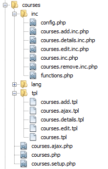 The courses.php file only contains a switch() statement which decides what file to include from the 'inc' folder. The files in 'inc' contain code similar to what you posted above.