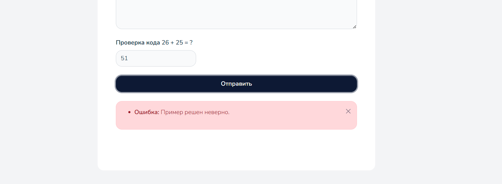 Установил плагин MathCaptcha Version=1.2.1. И обнаружил баг. Моя форма работает через аякс. Если все поля заполнил правильно с первого раза, в том числе и капчу, то отправляет. После повторной отправки, например забыл поле почты заполнить, заполнил. Но капча не правильно считает.