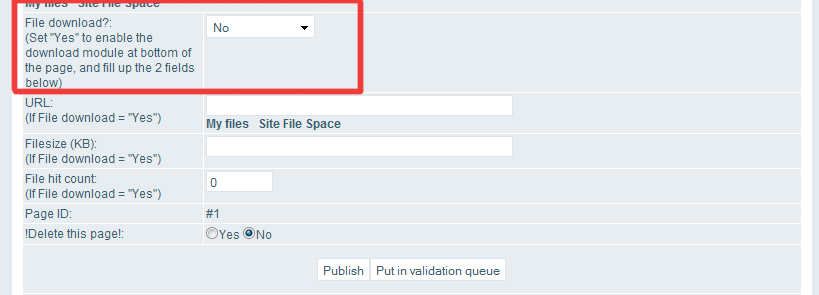 If "File Download:" is set to "No", Cotonti will skip to the end of <!-- END: PAGE_FILE --> and simply continue reading the code after that ending tag (without displaying the code between <!-- BEGIN: PAGE_FILE --><!-- END: PAGE_FILE --> to user).