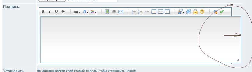 В Профиле пользователя: <textarea class="editor markItUpEditor" cols="58" rows="8" name="rusertext" style="width: 528px;"/>Вот так всё стаёт на свои места На этом сайте всё ок. На этом сайте по прежнему Тумбы добавляются в конец текста. + При удалении файла в папке пользователя выкидывает в корень