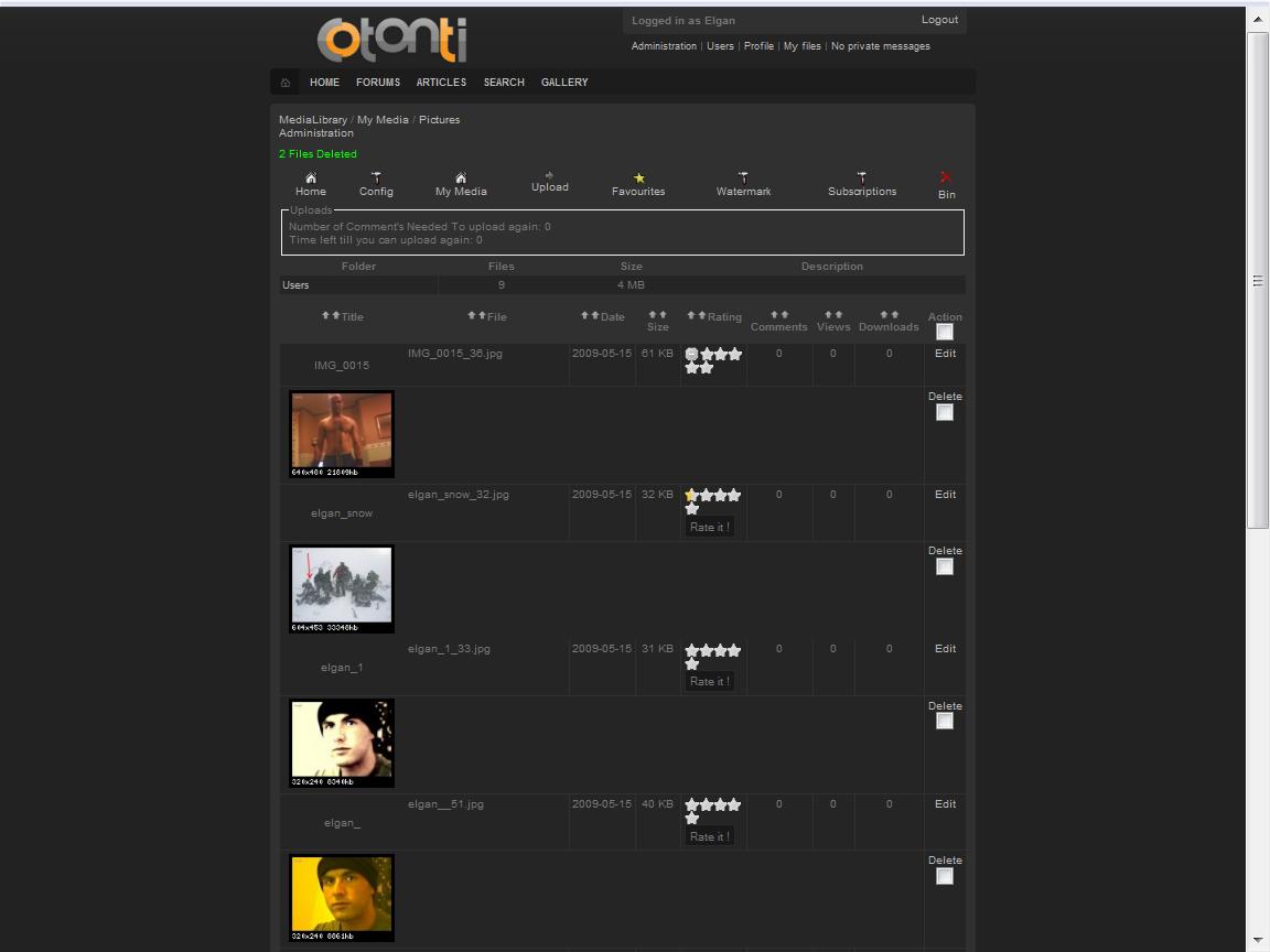 Upload with flash multie upload optional Favourites page shows your favourites with managment. Subscriptionspage shows your subscriptions with managment. bin, shows your deleted files with managment. Config shows your configurable settings. Admin