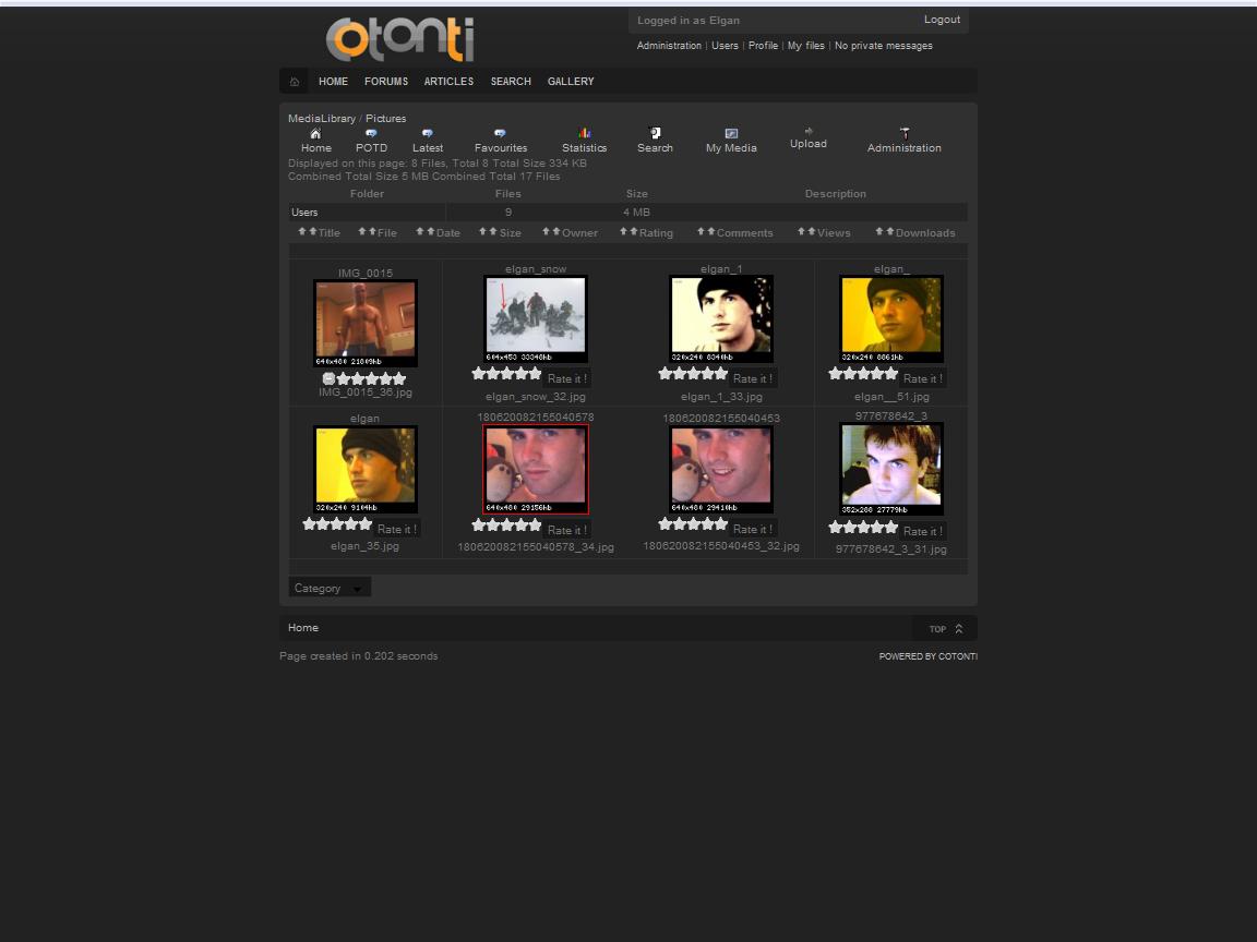 Video Gallery POTD With sub post of the week, post of the month and year. By best rated. Latest pages, Shows latest uploaded files from a date. favourites page, Shows users favourited Files Statistics shows Gallery stats. Search with pagination, My media page, SHows users own files, And mfile managment. My Media