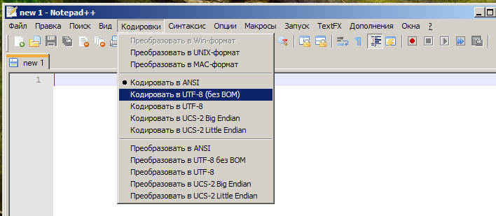 UTF8 достаточно просто сохранить этот файл с параметрами в