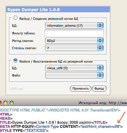 UTF8 так же там прописаны необходимые параметры. Этот файл надо скинуть в корень сайта и запустить:
