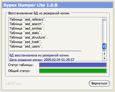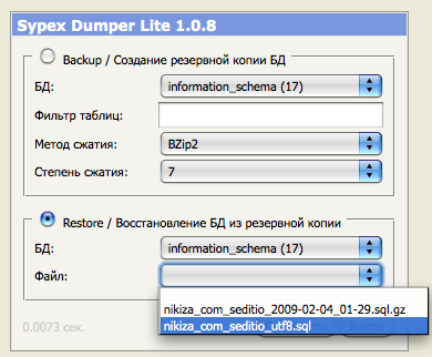 Теперь устанавлваем Sypex Dumper 2 на ваш новый сайт, не забываем закачать и созданный ранее бекап, входим в Sypex Dumper 2, импортируем вашу базу указав явно кодировку UTF-8 и поставив галочку "коррекция кодировки".