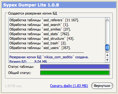 вот и всё дамп сделан и находится в корне вашего сайта в каталоге
