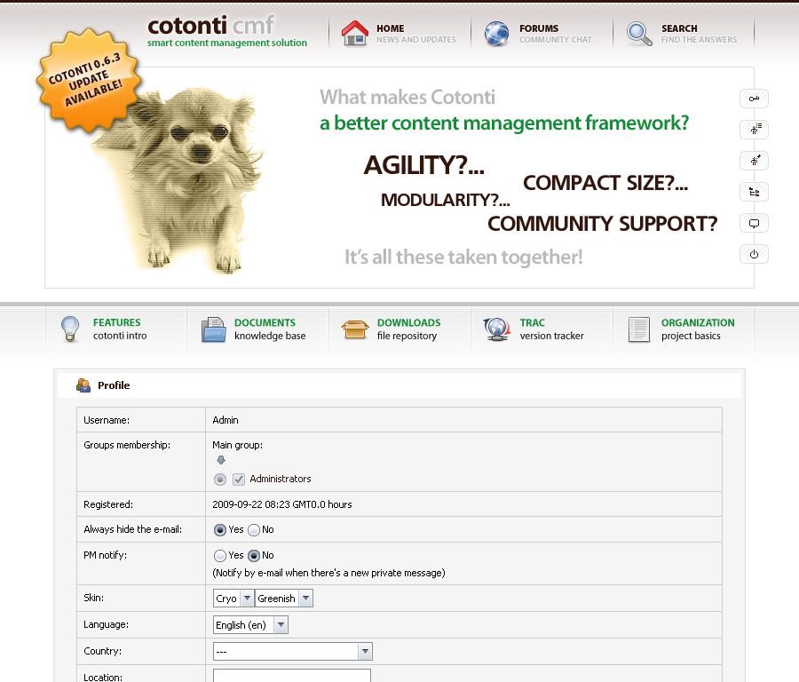 Live demo: Cryo skin for Cotonti CMS (Username: test, pass: test)