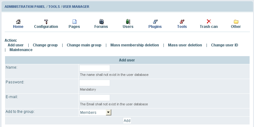 User mass editing (delete or group change) is enhanced by special filters (logins number, forumposts, days since last login)