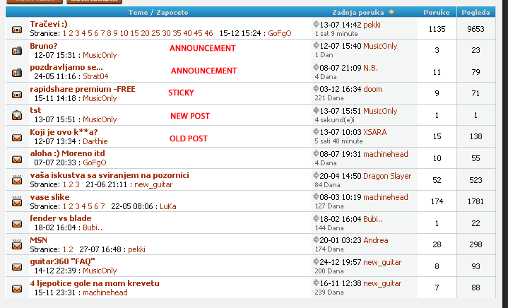 http://www.vilegaming.com/forums.x/3 See that the sticky posts are above and a bit seperated from the normal posts. I'd like to see this feature to, at least for sticky and announcements.. I do not care about locked posts, but it would be nice to see a separation of sticky and announcements.. |
